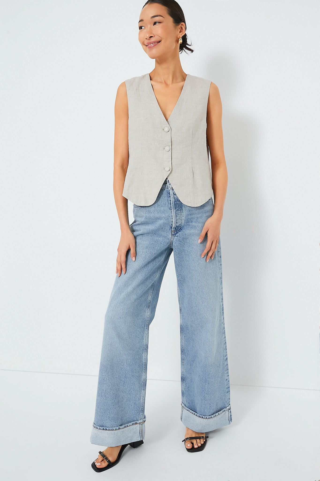 The Natural Linen Swing Freya Vest is an elevated and everlasting piece that can be worn all year long. Featuring a V-neckline. center button closure. and relaxed fit. Styled with wide leg jeans and a pop of color bag for an elevated work lunch or with linen pants and sandals for a chic on the go look!