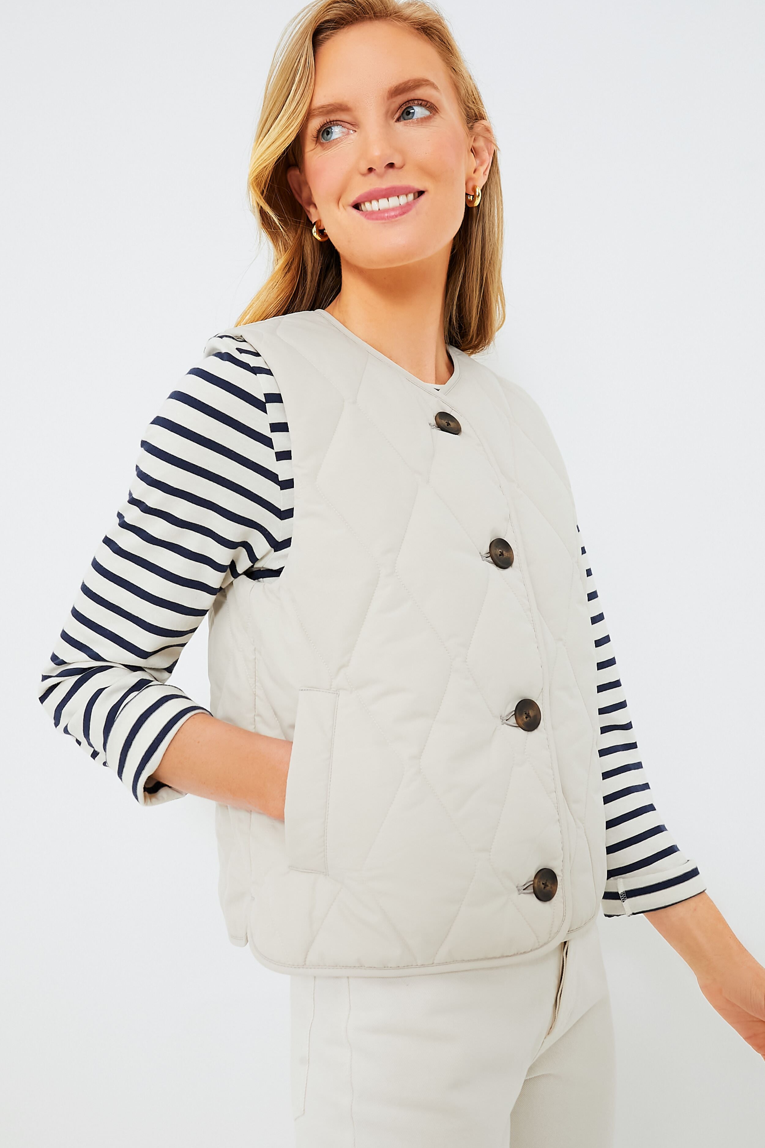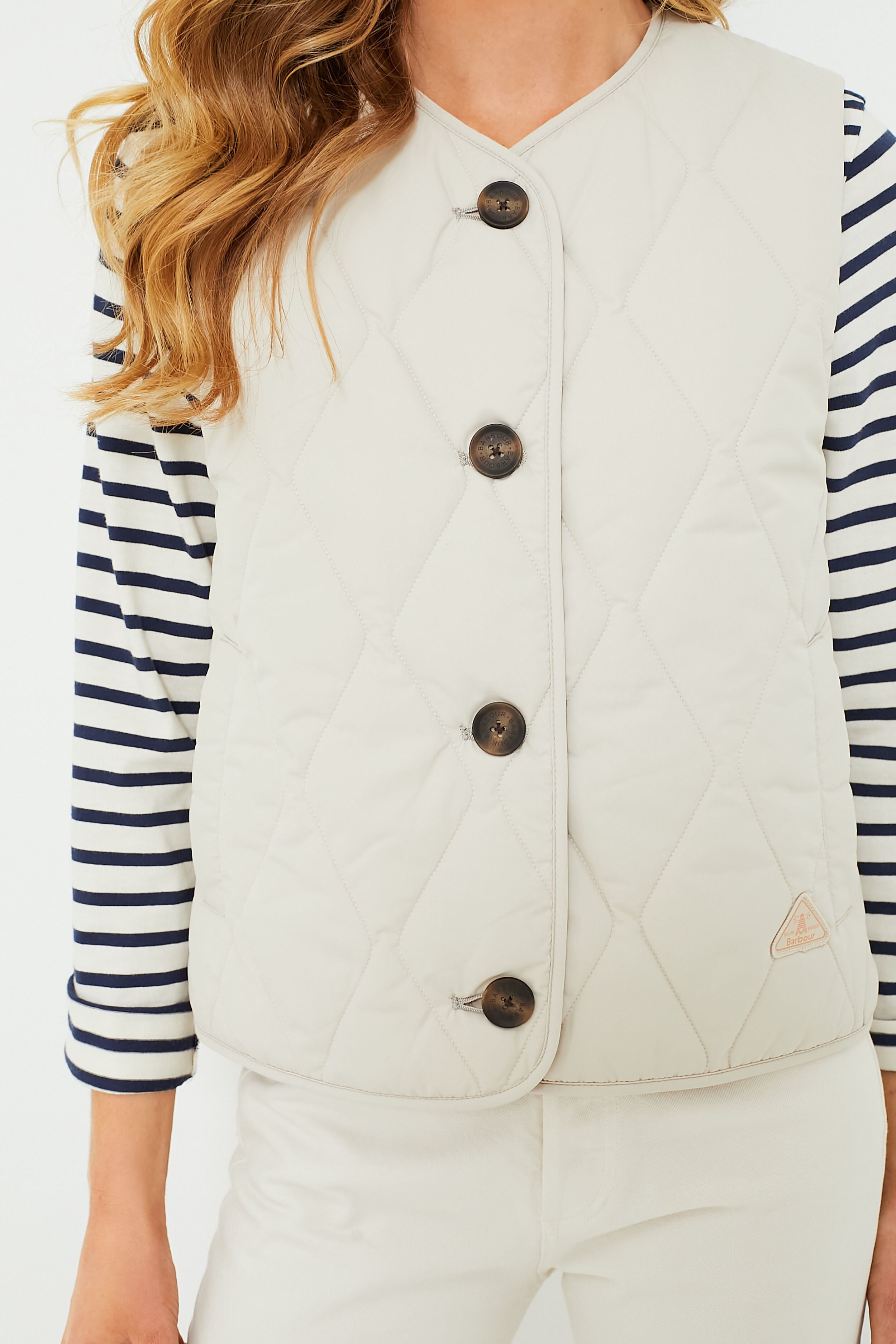A perfect transition piece for in-between seasons. the French Oak Kelley Gilet will instantly transform your wardrobe. A slightly cropped quilted body boasting a front button placket. side pockets. and a crew neckline. this style is not only fashionable but also functional for days where you need a little extra warmth. Pair over everything from blouses. to tees. to sweatshirts.