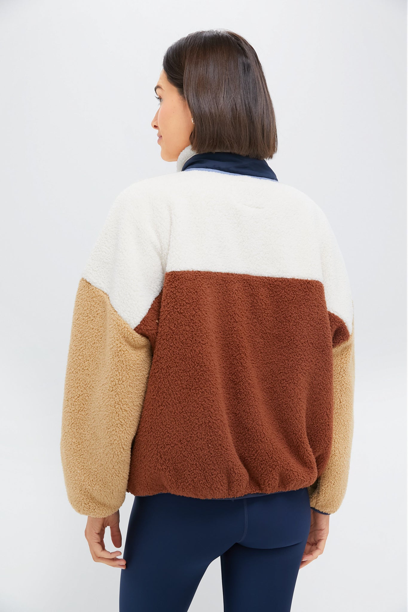 Made from an insanely soft and lofty plush fleece. this style was designed with contrast fabric colorblocking that reminds us of vintage camping gear. This full-zip style features dropped shoulders & zippered pockets for brisk mornings. Wear back to waffle thermal knits or relaxed denim for a chic. comfy look.